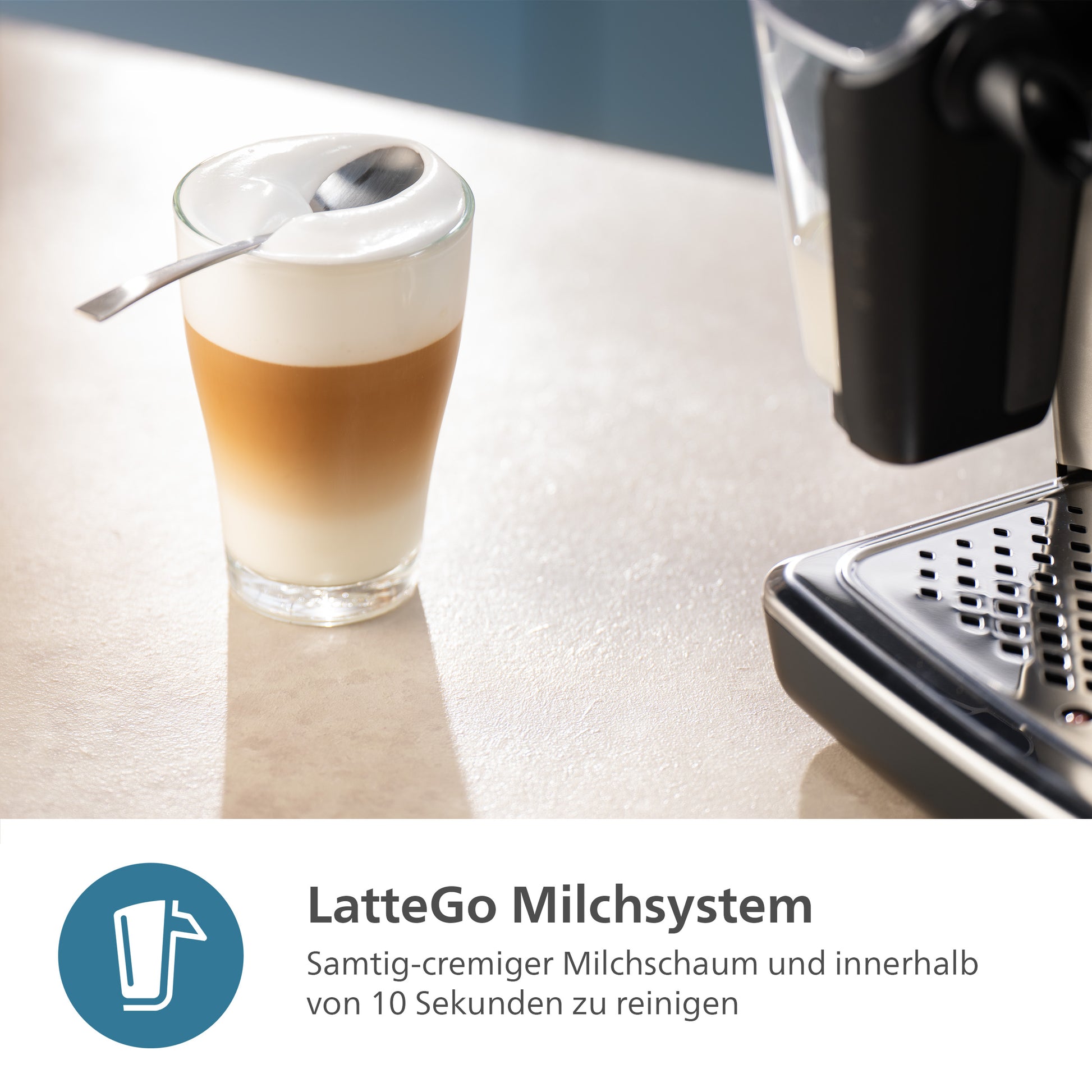 - LatteGo-Milchsystem: ohne Schläuche und lässt sich innerhalb von 10 Sekunden reinigen. Funktioniert selbst mit pflanzlichen Milchalternativen